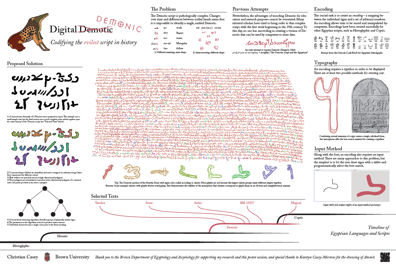The timeline is made much more prominent to highlight the importance of the Demotic script in our broader effort to understand Egyptian languages, which is one of the main takeaways that I intended for people to discover. That’s not as clear in the poster, but that was a compromise I had to make during the design process.